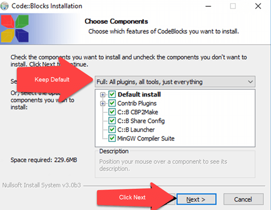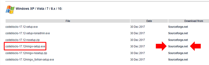 Step 2) Choose the installer with GCC Compiler, e.g., codeblocks-17.12mingw-setup.exe which includes MinGW's GNU GCC compiler and GNU GDB debugger with Code::Blocks source files.