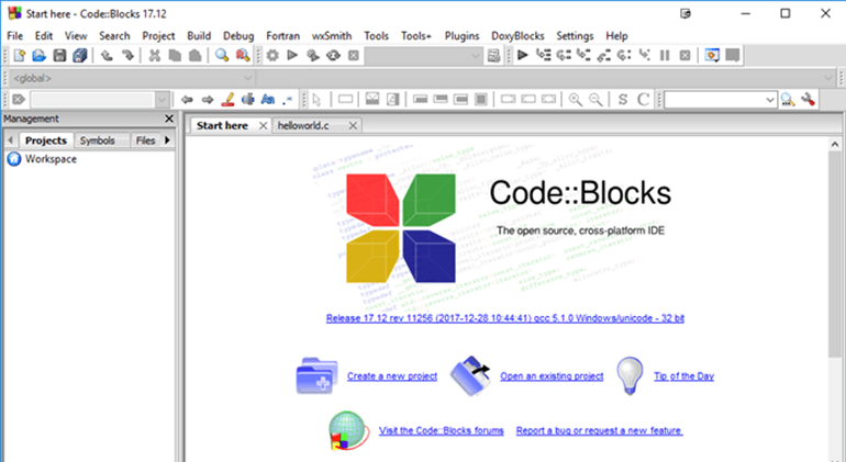 We will use an open-source Integrated Development environment named Code::Blocks which bundles a compiler (named gcc offered by Free Software Foundation GNU), editor and debugger in a neat package.