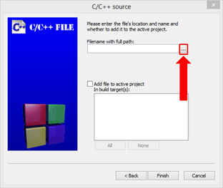 Step 5) Set the file path by clicking the "..." button, the explorer window permits to create the C file.