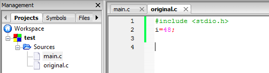 Step 7) Create a new C file [File -> new -> Empty File , save (as original.c ) and add it to the current project by clicking "OK" in the dialogue box .