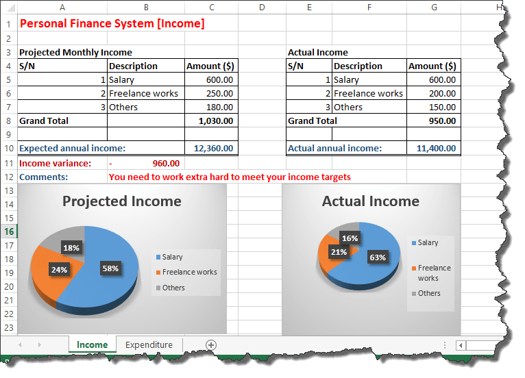 The variance between the projected income and actual income gives us the performance indicator of how accurate our estimates are or how hard we are working.