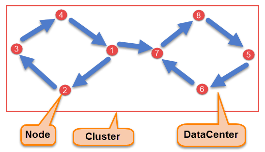 A collection of nodes are called data center. Many nodes are categorized as a data center.
