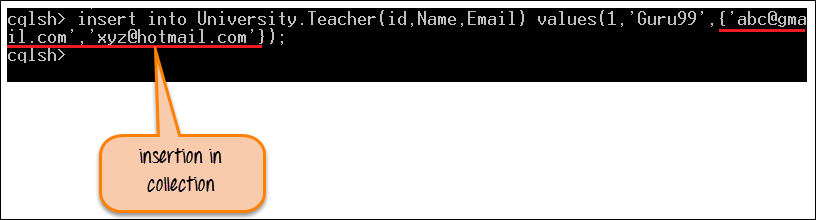 insert into University.Teacher(id,Name,Email) values(l,'gtupapers',{This email address is being protected from spambots. You need JavaScript enabled to view it.',This email address is being protected from spambots. You need JavaScript enabled to view it.'});When the order of elements matters, the list is used.