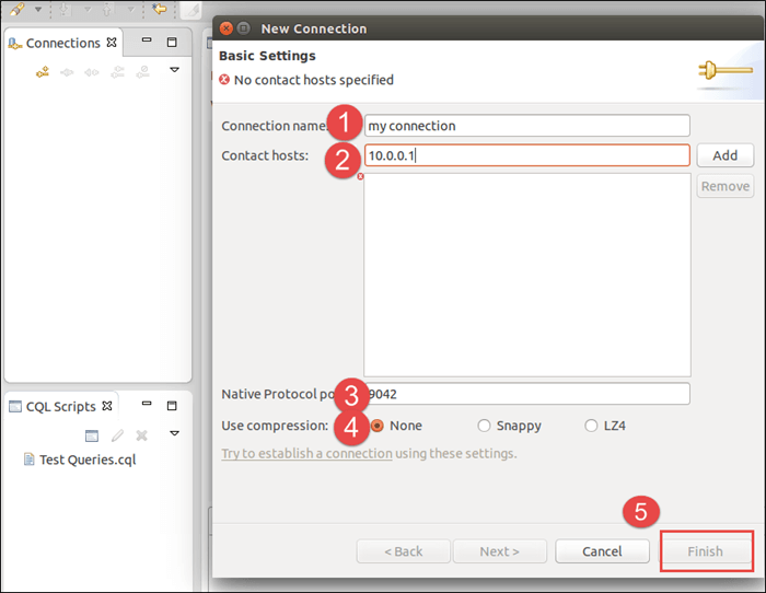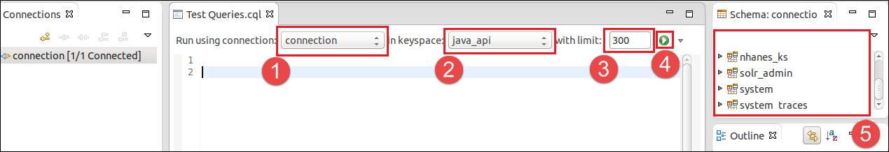 Step 3) In this step, you have to create a connection with Cassandra enterprise server. Go to connection window and click on the icon as shown here