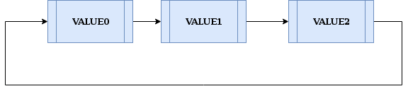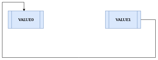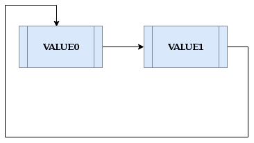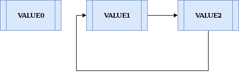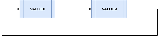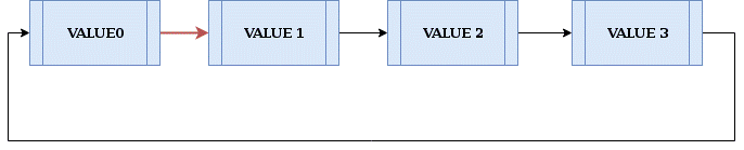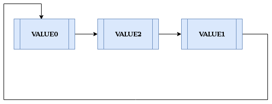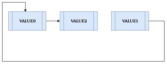 For example, let us insert "VALUE2" after the node with "VALUE0". Let us assume that the starting point is the node with "VALUE0".