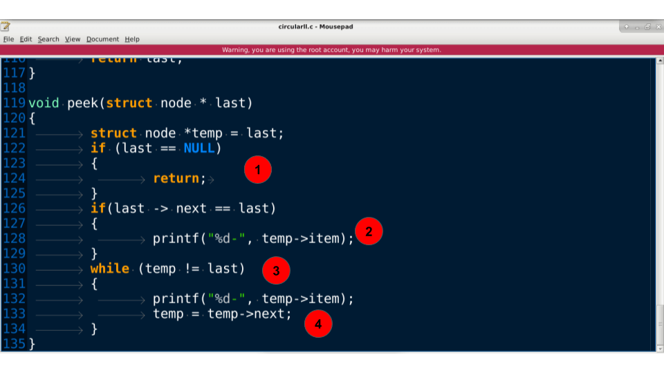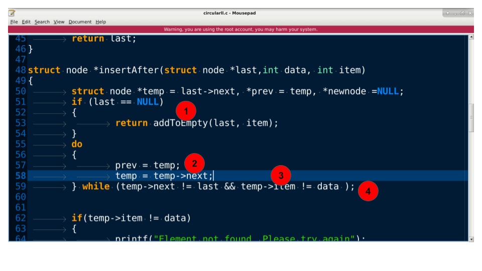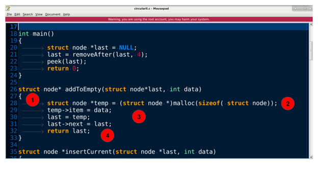 You are encouraged to attempt to read and implement the code below. It presents the pointer arithmetic associated with circular linked lists.