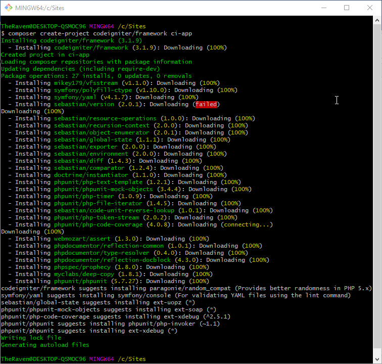 We will now create a CodeIgniter project using Composer. Run the following command