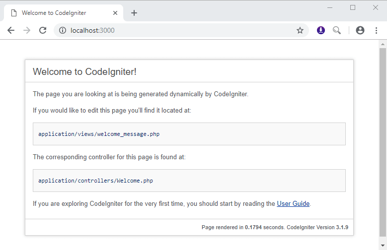 If you can see the above page then congratulations, you have successfully installed CodeIgniter.