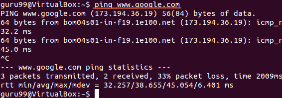 Here, A system has sent 64 bytes data packets to the IP Address (172.16.170.1) or the Hostname(www.google.com). If even one of data packets does not return or is lost, it would suggest an error in the connection. Usually, internet connectivity is checked using this method.