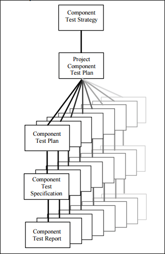 As per the below diagram, there will be a test strategy and test plan for component testing. Where each and every part of the software or application is considered individually. For each of this component a Test Scenario will be defined, which will be further brought down into a High Level Test Cases -> Low Level detailed Test Cases with Prerequisites.