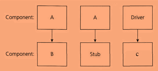But the component A and component C has not been developed yet. In that case, to test the component B completely, we can replace the component A and component C by stub and drivers as required. So basically, component A & C are replaced by stub & driver's which acts as a dummy object till they are actually developed.