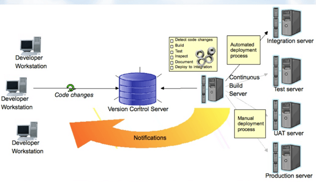 In Continuous Integration after a code commit, the software is built and tested immediately. In a large project with many developers, commits are made many times during a day. With each commit code is built and tested. If the test is passed, build is tested for deployment. If the deployment is a success, the code is pushed to Production. This commit, build, test, and deploy is a continuous process, and hence the name continuous integration/deployment.