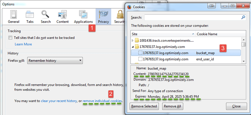 For example, in Mozilla Firefox browser you can see the cookies in browser options. To view this click on Tools -> Options -> Privacy and then click on "Remove Individual Cookies".