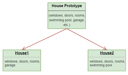 In the above figure, we have a single house prototype. From this prototype, we have created two houses with different features.