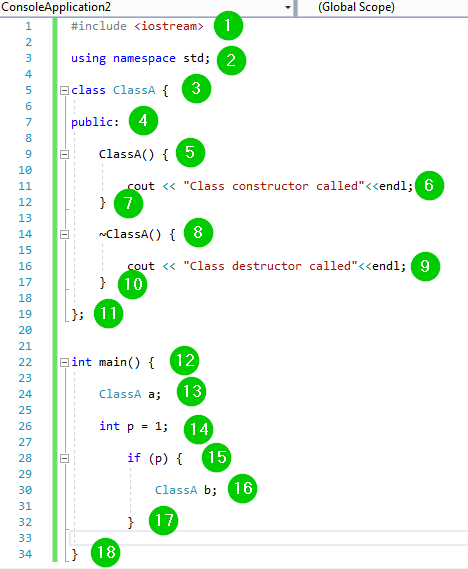 - Text to print on the console when the destructor is called. The endl is a C++ keyword, which means end line. It moves the mouse cursor to the next line.