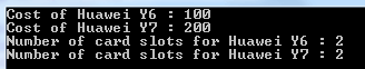 cout << "Number of card slots for Huawei Y6 : " << Y6.slots << endl;