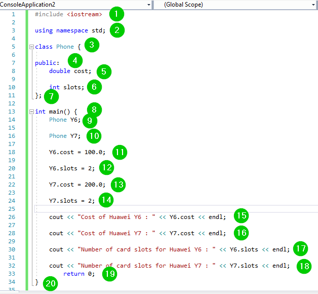 - Access the variable/member cost of class Phone using the object Y7. The value is set to 200.0. The cost of Y7 is now set to 200.0.