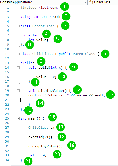 - Use the protected access modifier to mark the class member to be created as accessible to child classes.