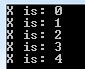 Creating a for loop. The initialization creates an integer variable x and assigns it a value of 0. The condition states that the value of x must be less than 5. The increment increases the value of x by 1 after every iteration. The { marks the beginning of the body of the for loop.
