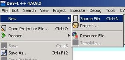 Step 2) Once the program opens, you need to create a new source file, so you can start writing your first C++ program. To do this select File > New > Source File. The path is shown in the figure below.