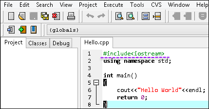 Code line 6: The operator << writes its second argument onto its first. In this case, the string literal "Hello, World!" is written onto the standard output stream std:: cout.