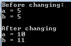 Even Though, new values are assigned to variable a and b inside the function test, once the function call completes, the same is not reflected the outer function main.