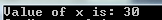 cout << "Value of x is : ";