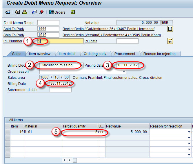 Debit Memo Request is a sales document used in sales document processing to request a debit memo for a customer.