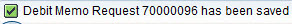 A message "Debit Memo Request 700000 has been saved" is displayed.