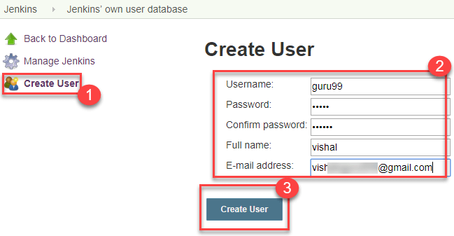 You will see on the dashboard that a new Jenkins create user as per the details entered.