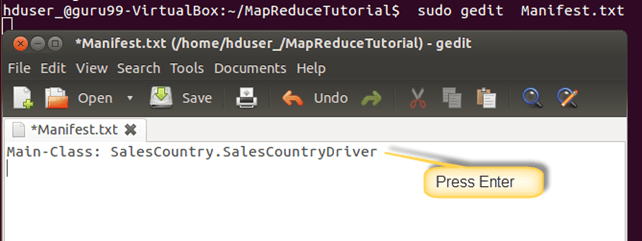 SalesCountry.SalesCountryDriver is the name of main class. Please note that you have to hit enter key at end of this line.