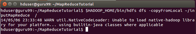 Now Use below command to copy ~/inputMapReduce to HDFS.
