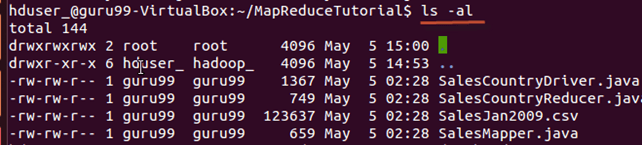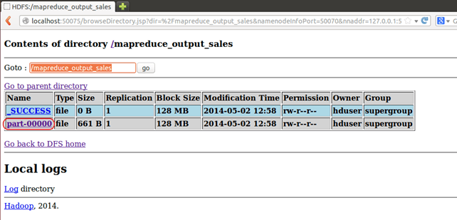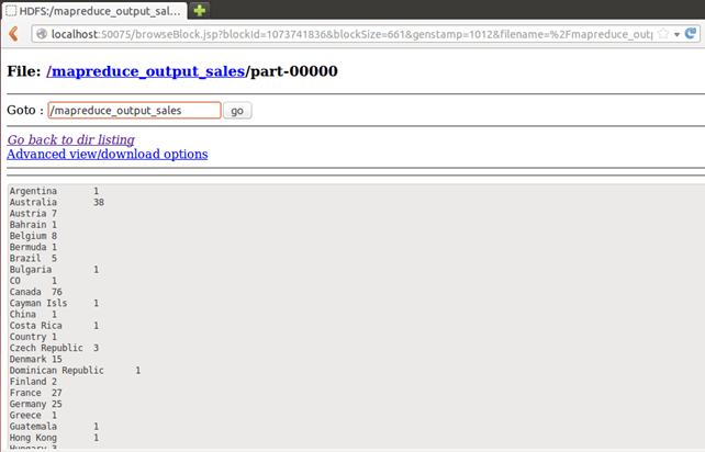 This will create an output directory named mapreduce_output_sales on HDFS. Contents of this directory will be a file containing product sales per country.