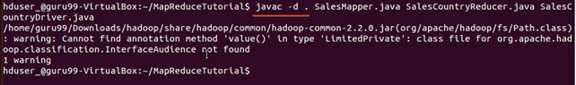 javac -d . SalesMapper.java SalesCountryReducer.java SalesCountryDriver.java