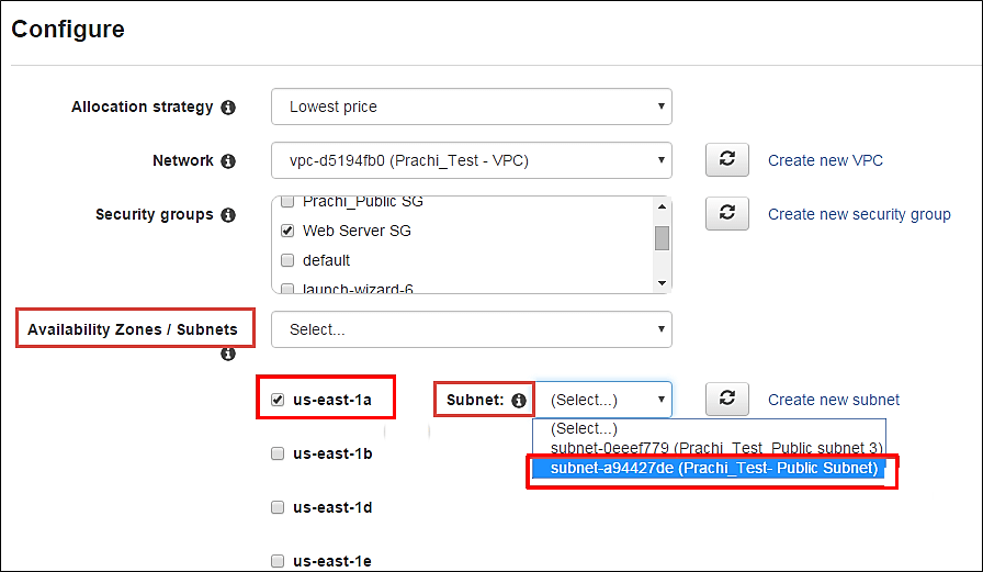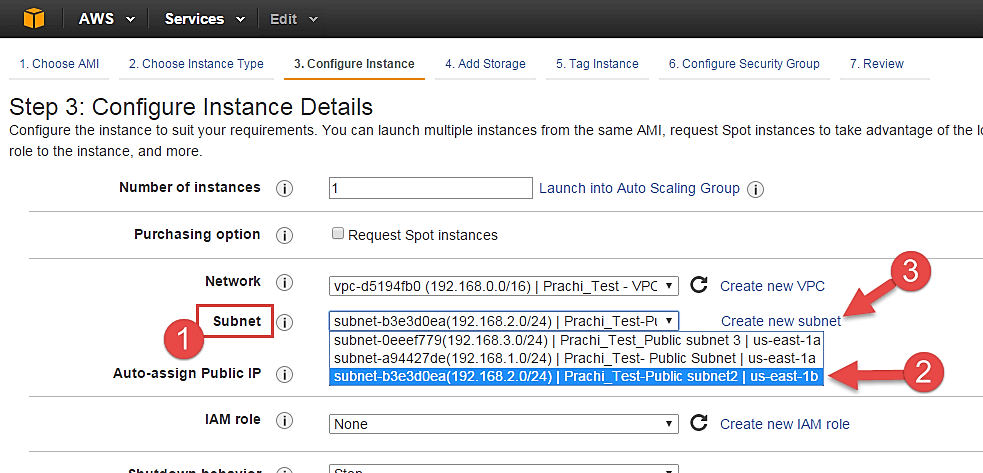 Step 5) Subnets- we are going to select the subnet from our list of already available list.
