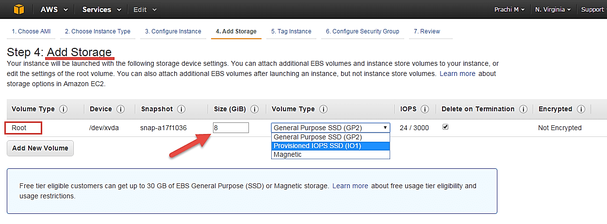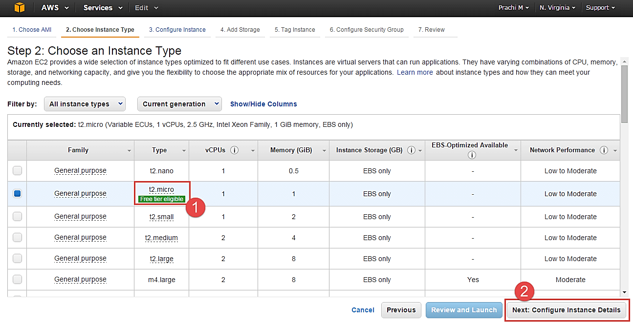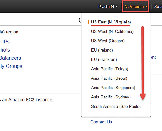 Here we are selecting N. Virginia. AWS provides 10 Regions all over the globe.