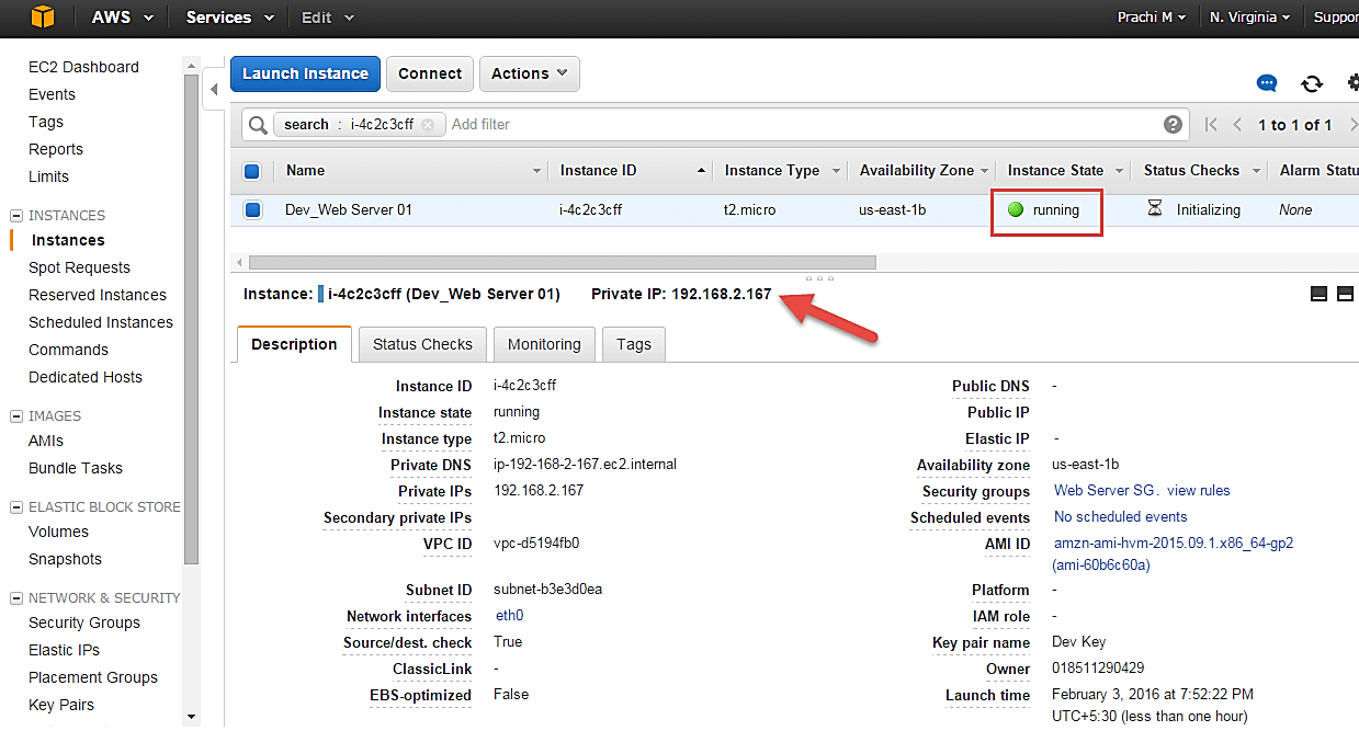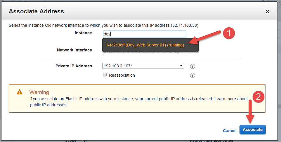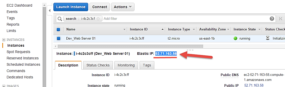 Step 6) Come back to your instances screen, you'll see that your instance has received your EIP.