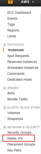 Step 1) On the left pane of EC2 Dashboard, you can go to 'Elastic IPs' as shown below.