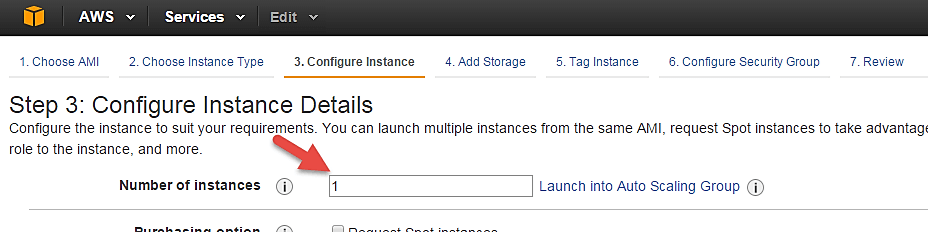 Step 1) No. of instances- you can provision up to 20 instances at a time. Here we are launching one instance.
