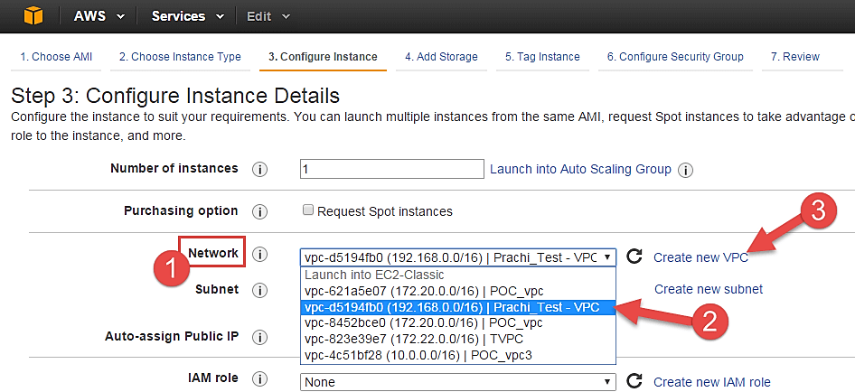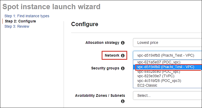 Step 2) Select the VPC- we'll select from the list of available VPCs that we have created earlier. We can also create a new VPC in this step.