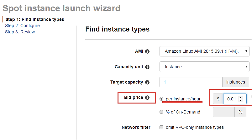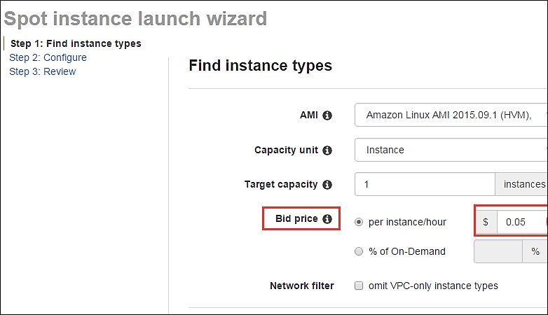 Step 4) Bid Price – this is the maximum price we are ready to pay for the instance. We are going to set a particular price per instance/hour. This is the simplest to calculate based on our business requirement. We will see ahead how we should determine the bid price so that our bid price always remains high and doesn't exceed the spot price so that our instance keeps running.