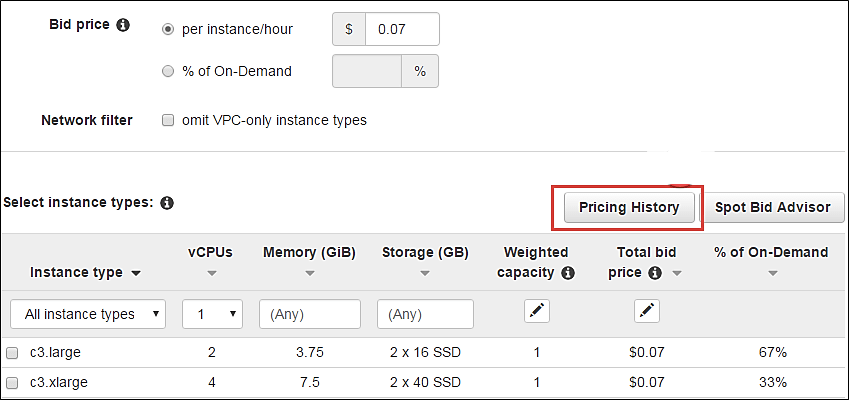 Here in Pricing History, we can see a graph depicting instance pricing trends with historical data. You can select the parameters and get an idea of the pricing of our desired instance over a period of time.