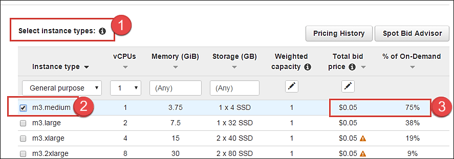 When your bid price exceeds the market spot price of the instance called as the ‘spot price,' your instance stays running. When the spot price overshoots the bid price, AWS will terminate your instance automatically. Therefore, it is necessary to plan the spot instances in your application architecture carefully.