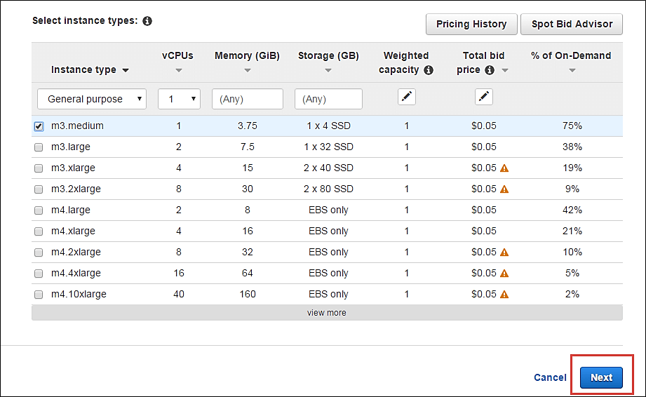 For the sake of maintaining our instance always available and if it falls within our budget, we can quote a higher bid price. Here we have quoted a slightly higher price of $0.05.