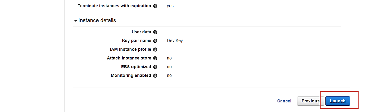 After we are done reviewing, we can proceed with the launching by clicking the Launch button as shown below.