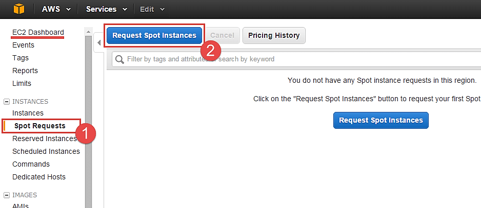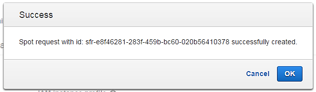 The spot request creation wizard will close, and the page will automatically direct back to the EC2 Dashboard.