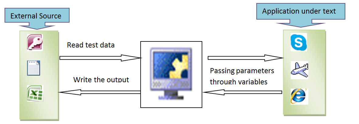 However, in DDF, scripts are written to do parameterization. This kind of framework is useful when the AUT’s functionality must be tested with several inputs and capture the respective outputs. These inputs can be read from an external file such as Database, Excel, Outlook, Text file etc and the respective outputs are written back to the corresponding external source.