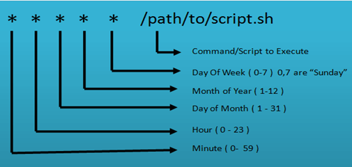 [Minute] [hour] [Day_of_the_Month] [Month_of_the_Year] [Day_of_the_Week] [command]