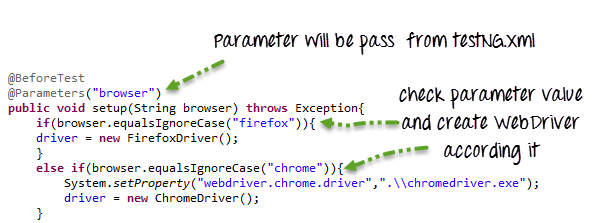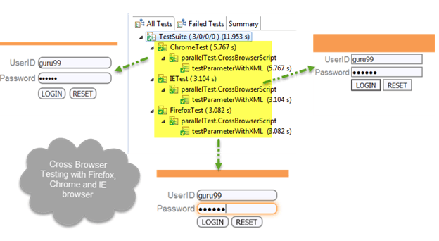 Second Test 'FirefoxTest' will pass the value of parameter 'browser' as 'Firefox' so FirefoxDriver will be executed. This test case will run on FireFox browser.