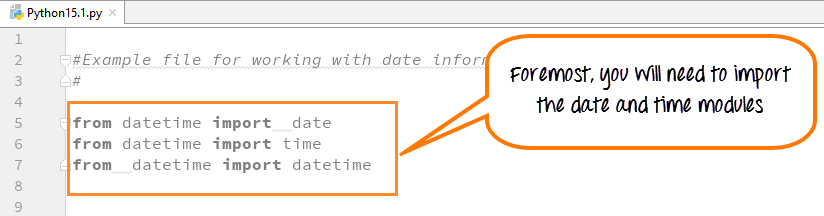 Step 1) Before you run the code for datetime format in Python, it is important that you import the Python date time modules as shown in the screenshot below.